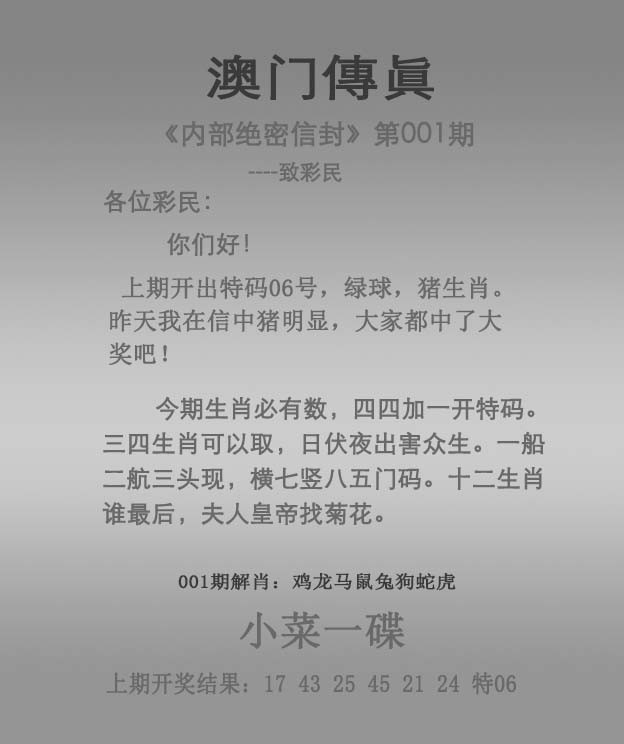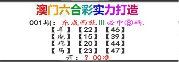 001期 单【羊鸡兔猪】 双【马虎猴鼠】 开??准