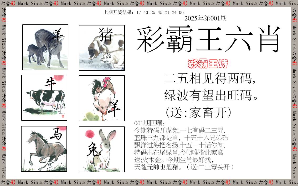 001期⑦肖【马狗猴猪牛鼠羊】开 00 准