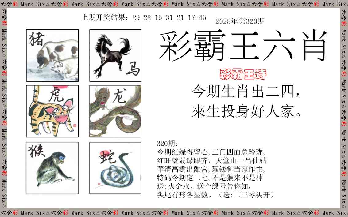 316期⑦肖【蛇狗鸡马猴龙羊】开 马24 准