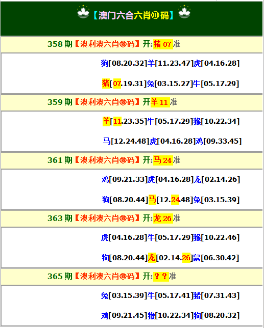 365期【鼠猴鸡马虎兔】开 ?? 准