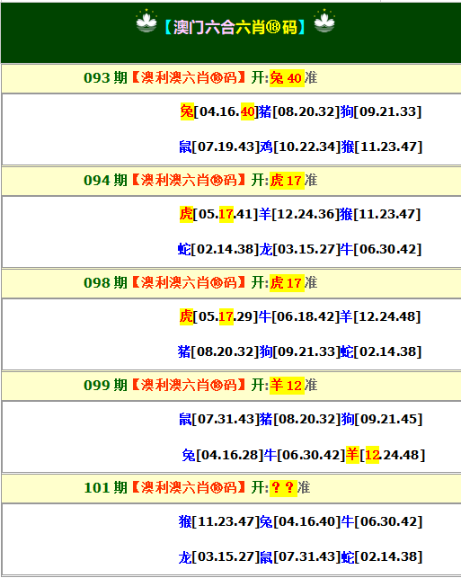 093期 单【虎猴龙狗】 双【鸡兔猪羊】 开兔40准