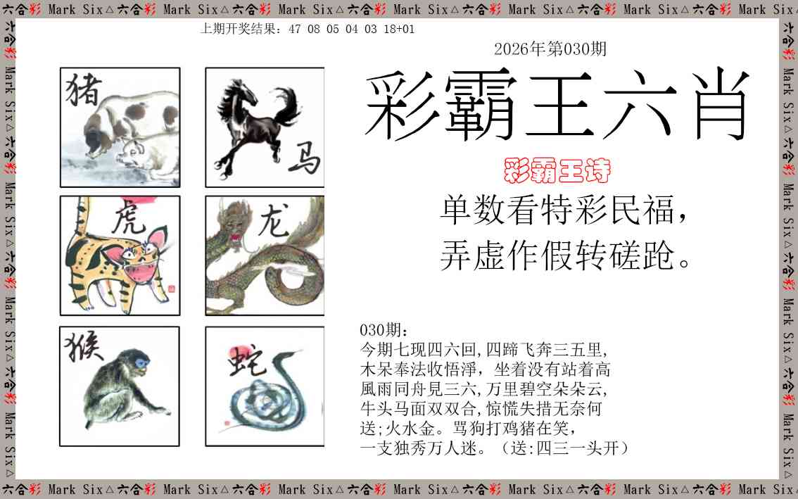 030期 单【鸡猪兔蛇】 双【鼠猴虎龙】 开??准