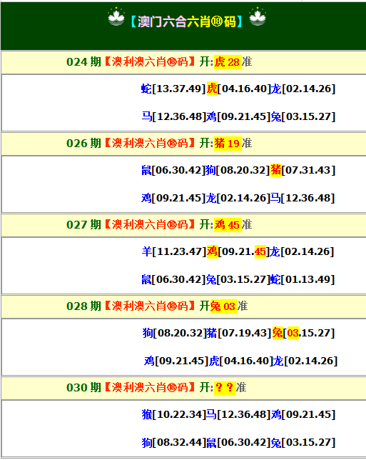 024期 单【鸡牛猪蛇】 双【虎鼠狗马】 开虎28准