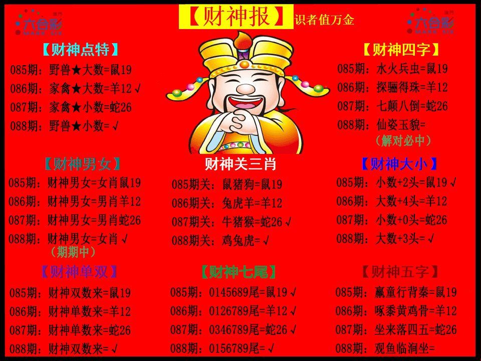 088期主攻特肖【猪鸡牛兔】开 ?? 准